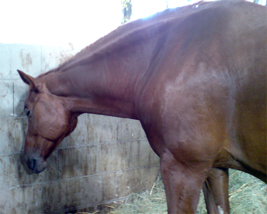 noch geschoren, an den Einstichstellen vorne für die Hufgelenke das komplette